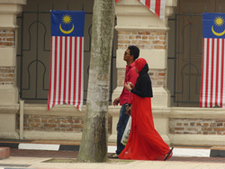 Le drapeau de Malaisie flotte ici partout, des