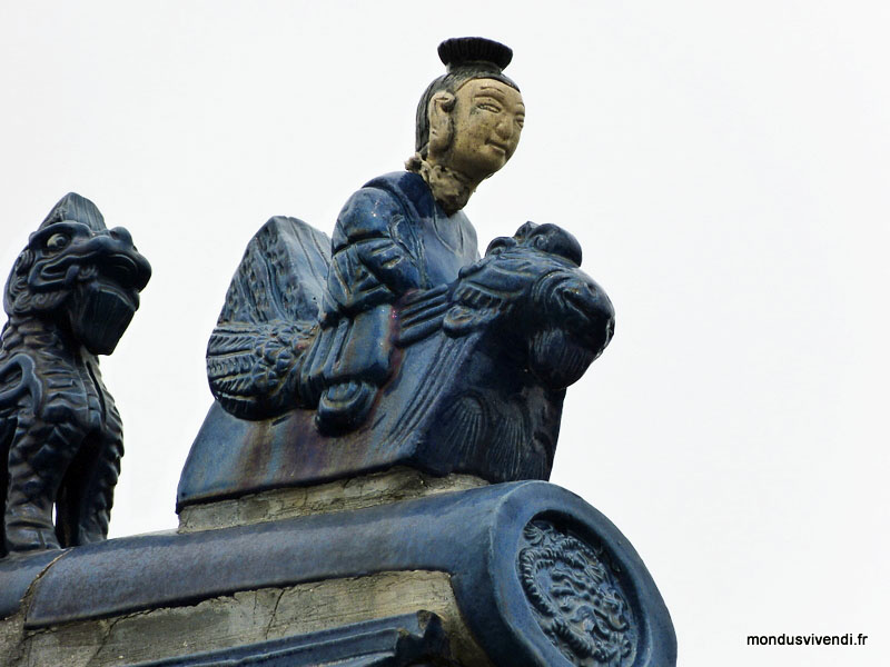 De monbreuses statues d'animaux ornent les rues ; dragons et lions gardent les entrées.