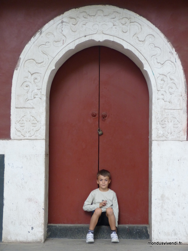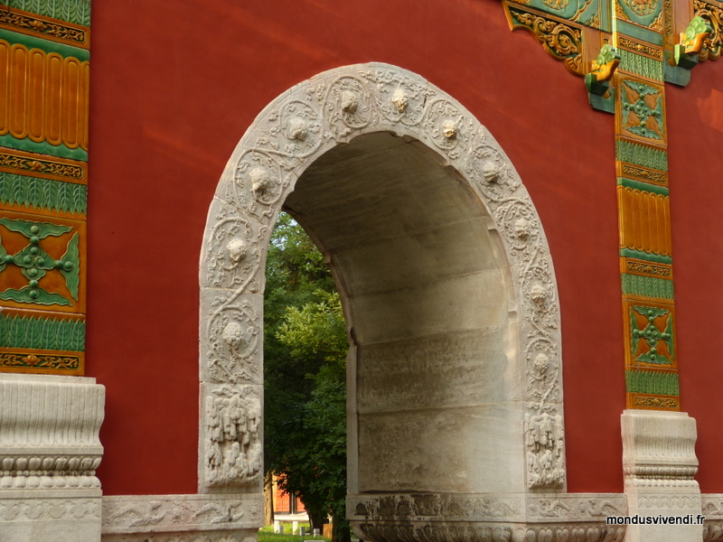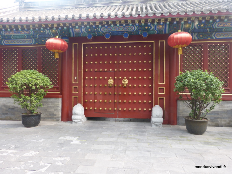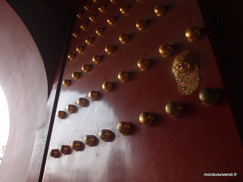 Drapées de rouge, les portes s'ornent de décorations dorées dans la tradition chinoise. Des portes monumentales invitent au respect devant les momuments impériaux et les lieux de culte.